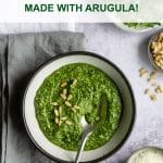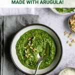 Arugula pesto is a great way to use up an abundance of fresh arugula (because we all know that has happened to us at least once!).