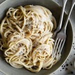 Plate, and spoon the creamy sauce on top. Add more fresh pepper if desired. Enjoy your cacio e pepe!