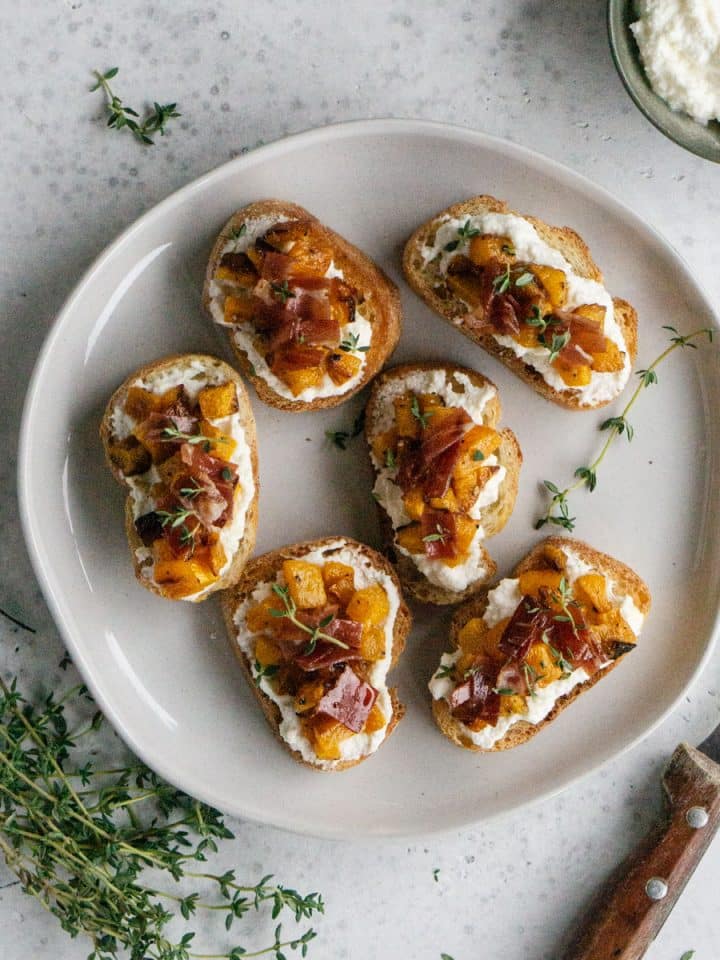 Butternut Squash Crostini with Speck and Ricotta