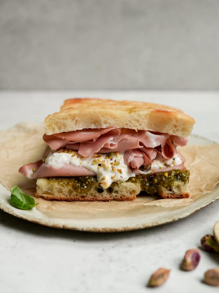 Mortadella Sandwich - With Burrata and Pistachio Pesto!
