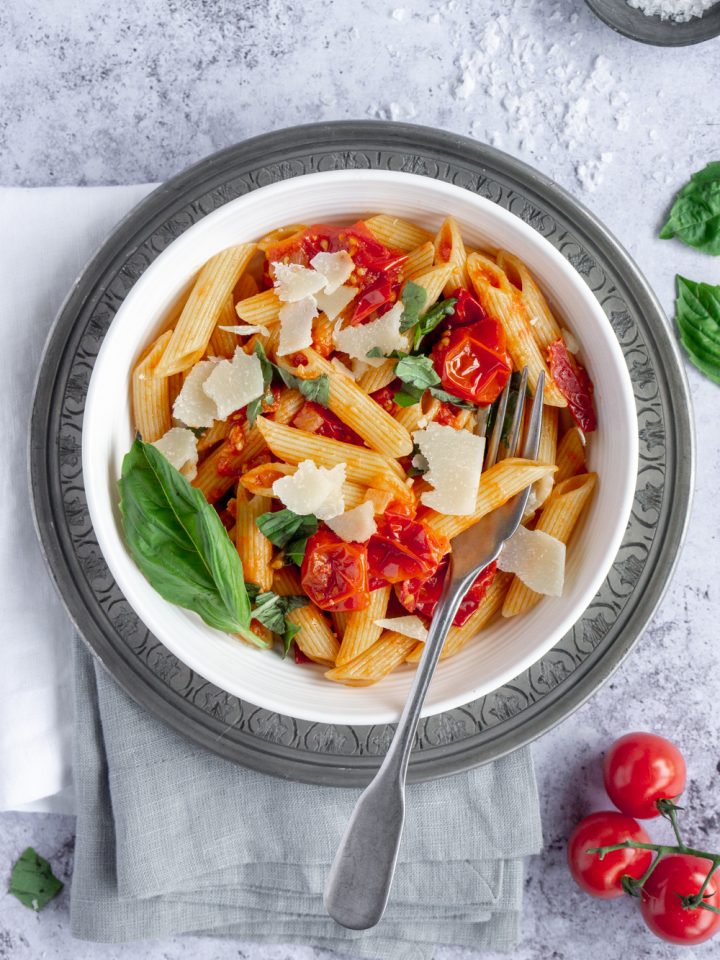 Burst Cherry Tomato Pasta with Creamy Burrata