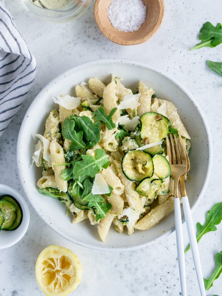 Lemony Ricotta Pasta with Zucchini and Arugula