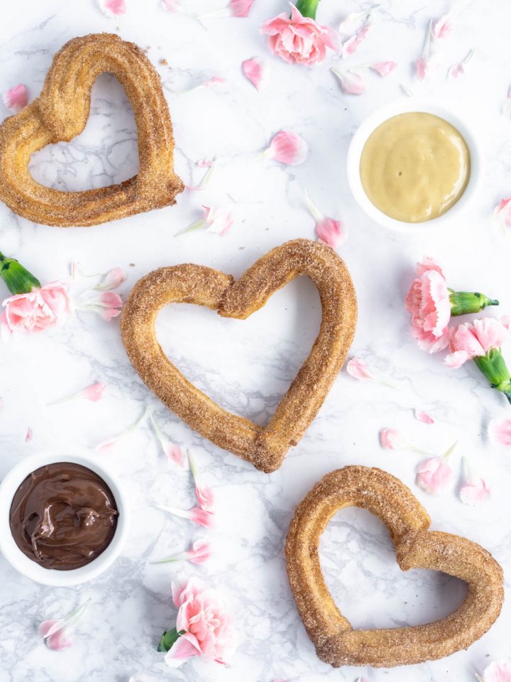 Heart Churros with Nutella and Mascarpone Dipping Sauces