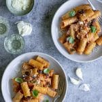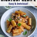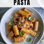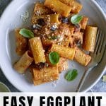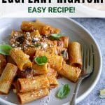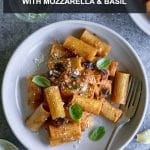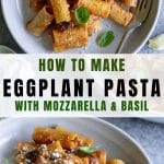 This eggplant pasta is made with fresh eggplant, rigatoni, tomato sauce and mozzarella. An easy and quick lunch or dinner!