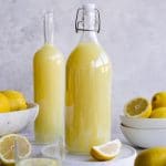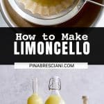 This limoncello recipe is a simple step-by-step guide to making your own limoncello at home! All you need is lemons, grain alcohol, sugar, water and lots of time!
