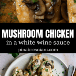 Mushroom Chicken, a delicious weeknight dinner recipe that's easy to make and requires just a few simple ingredients. It has tons of flavor and uses white wine instead of cream to create a sauce.