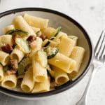This pancetta and zucchini pasta only takes 20 minutes to make but packs in so much flavor!