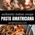 Pasta amatriciana is one of the four roman pasta recipes - made with bucatini pasta, canned tomatoes and guanciale - it's easy to make and packs in so much flavor! Top with pecorino romano, and you have a perfect plate of pasta.