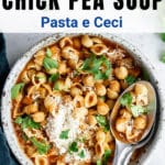 Pasta e Ceci is a pasta-chickpea soup fusion that originates in Rome. What's truly magical about this dish is how it adapts to your cravings. You can prepare it as a broth-packed, soupy version or a hearty pasta dish (just like in this pasta e piselli dish!)