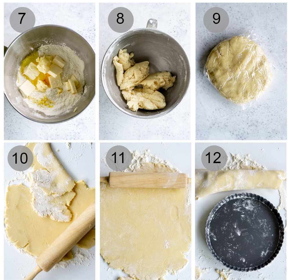 Butter and flour a tart pan. Add the dough to the tart pan (photo 12) cut and remove any overhang. Prick the base of the dough with a fork (photo 13)