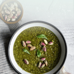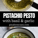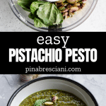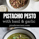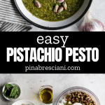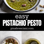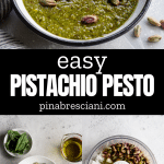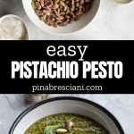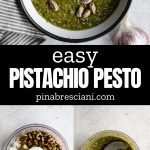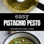 This versatile Pistachio Pesto is a unique take on classic basil pesto. It blends just 6 ingredients - pistachios with classic pesto ingredients, offering a creamy texture and unique taste perfect for pasta and crostini, and is easy to make in just 5 minutes!