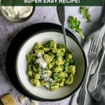 I love ricotta gnocchi because they are SO EASY to make. While I love traditional potato gnocchi, they can be a bit tedious to make. First you have to peel the potatoes and boil them. Let them cool slightly and finally combine with flour/egg and start shaping.