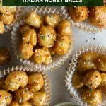 You can also add the struffoli to the warm honey straight from frozen, and they will warm up as they are coasted in the honey.